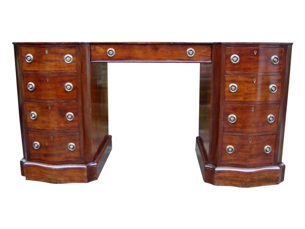 An Impressive Victorian Serpentine Front Pedestal Writing Desk