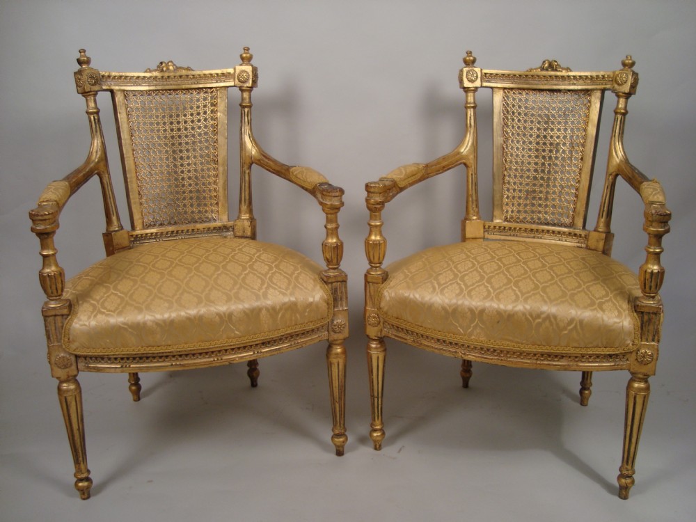 A Pair of Louis XVI Style Giltwood Fauteuils Circa 1860