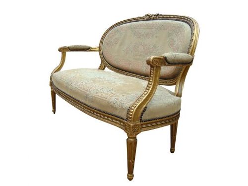 A late 19th Century Louis XVI style giltwood showframe salon settee.