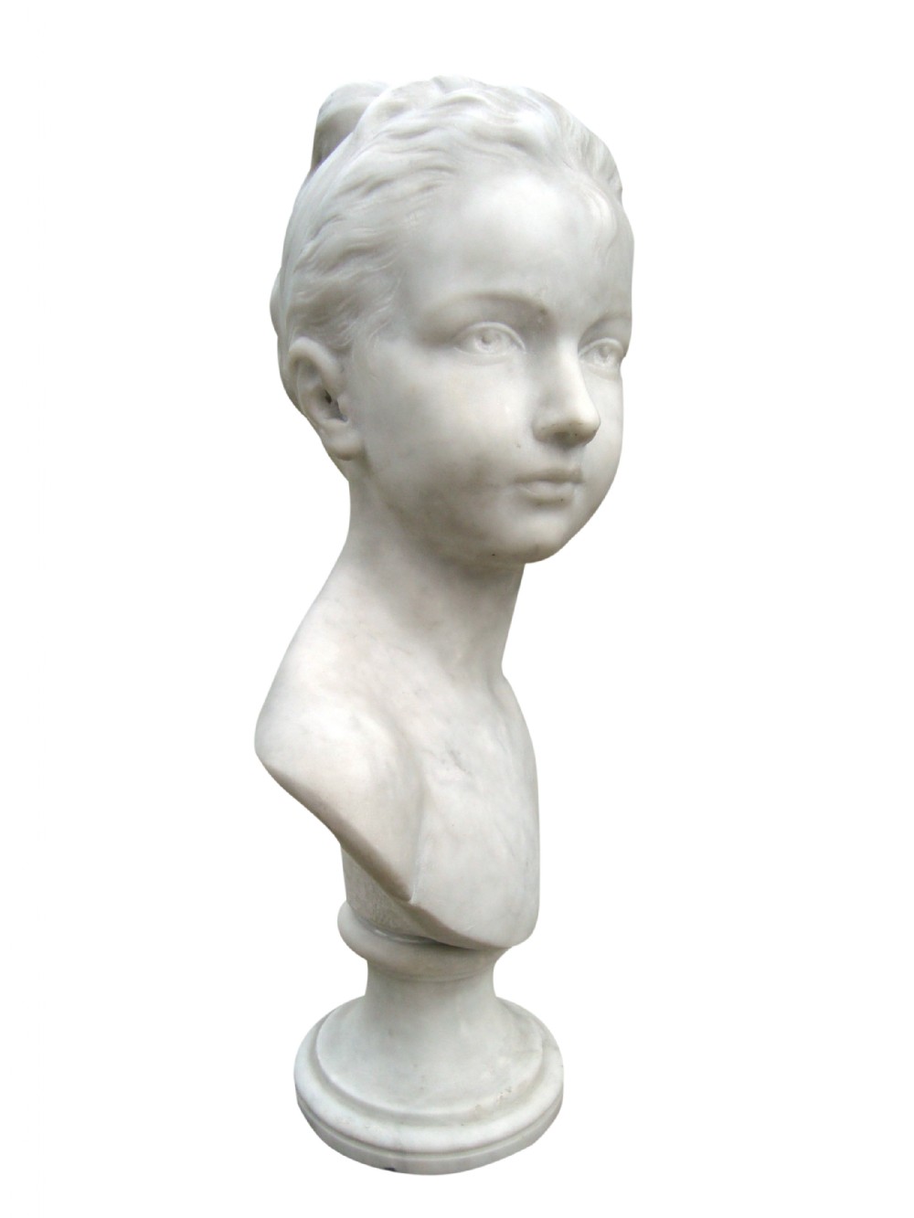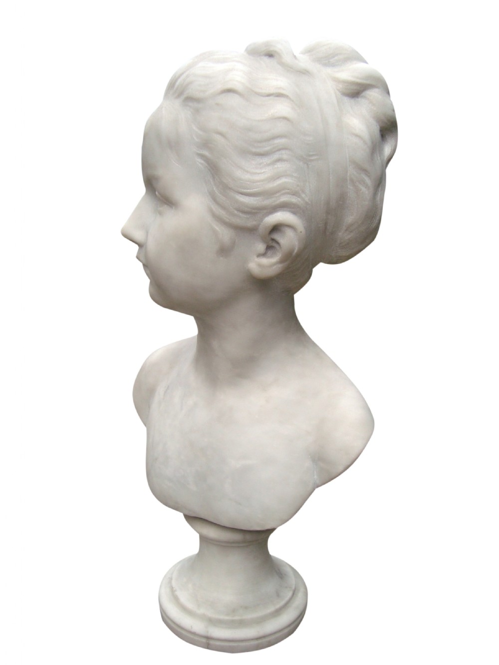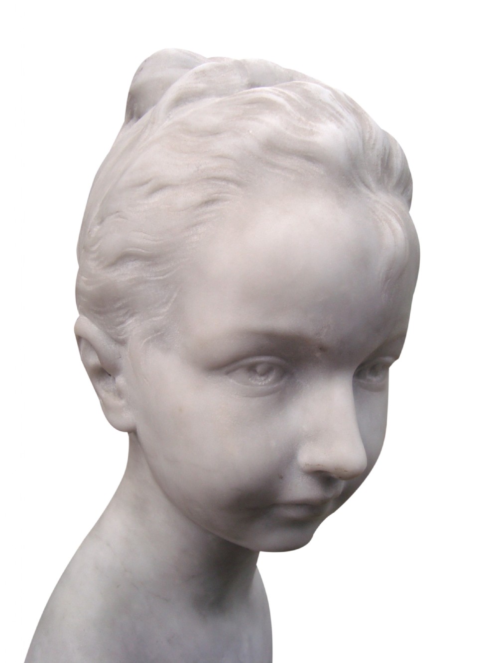 An Impressive Victorian white marble bust of a pretty young girl with an incredible profile .